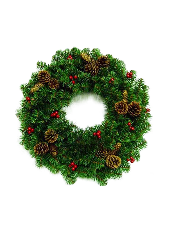 Искусственный рождественский венок с красными сосновыми шишками